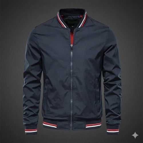 Men's Lightweight Bomber Jacket Sporty Style Breathable Fabric Casual Wear - Dark Blue